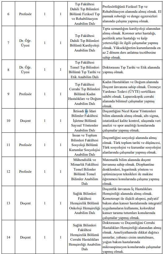 14 Yeni Akademik Kadro İçin Başvuru Süreci Başladı