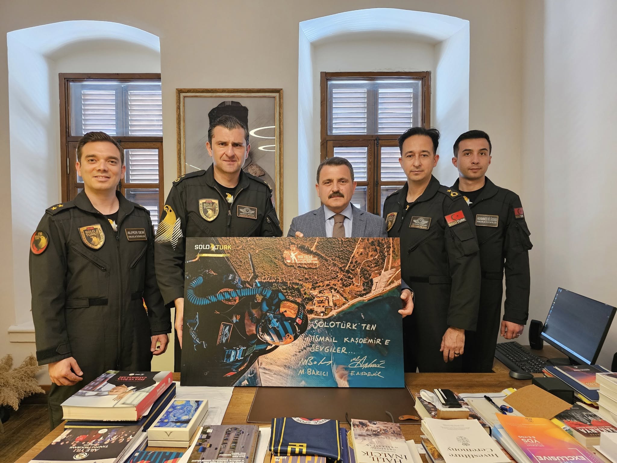 Gökyüzünde sergiledikleri muhteşem manevralarla izleyenleri büyüleyen SOLOTÜRK, 23 Nisan ve Çanakkale Kara Savaşları’nın 110. yılı kapsamında Çanakkale’ye geldi. SOLOTÜRK ekibi, Çanakkale Tarihi Alan Başkanı İsmail Kaşdemir’i makamında ziyaret etti.